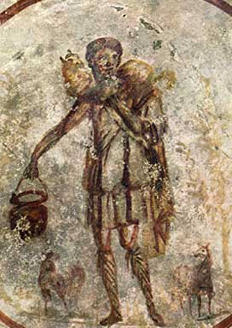 Mogelijk allereerste afbeelding van Jezus (als herder). En dan dus zonder baard