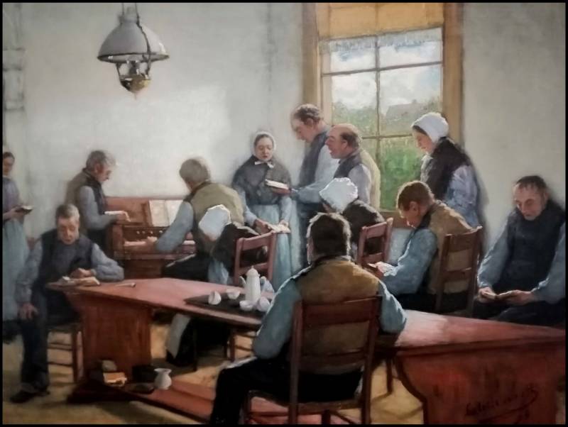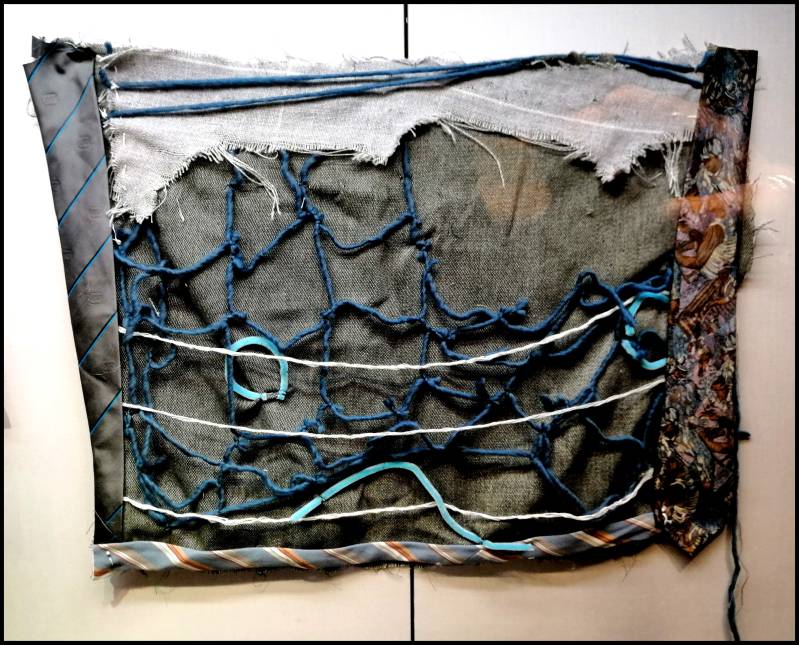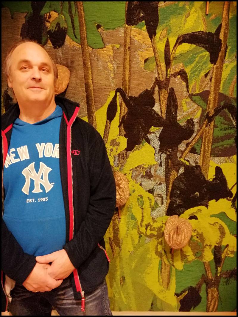 Het hing in de voordrachtsruimte. Al wist ik niet of het bij de expositie hoorde, ik vond het een opmerkelijk schilderij.