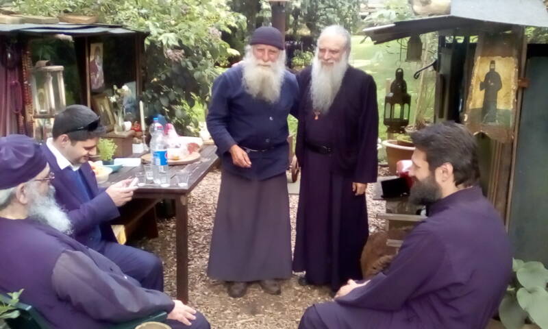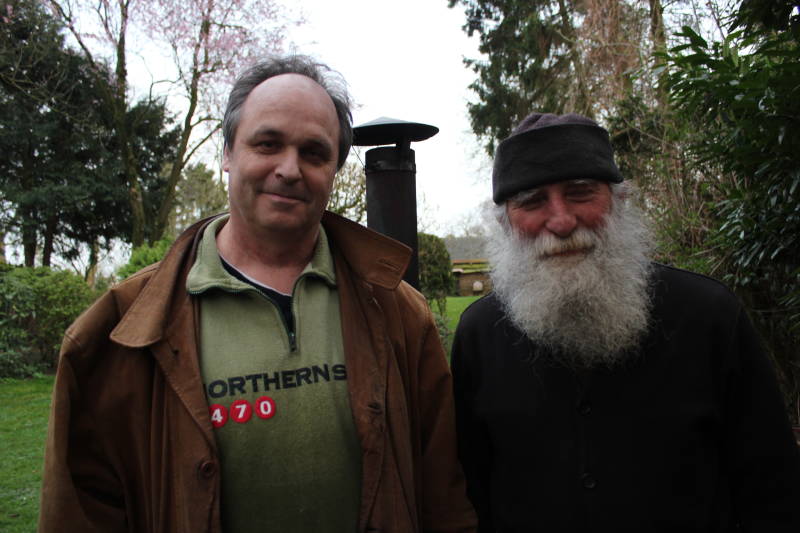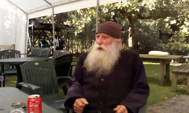 Jozef was eens een van de meest bekende poppenspelers van Nederland. Omdat ik vermoedde dat hij mij veel kon vertellen over Bijbelverhalen, ben ik hem in 2004 voor het eerst gaan opzoeken. Sinds die tijd hebben we heel veel gesprekken met elkaar gehad en ben ik hem als mijn vriend gaan beschouwen. Op de foto zie je Jozef met mijn andere vriend Firoz. Vreemd genoeg had Firoz mijn vriend Jozef leren kennen in de tijd waarop Jozef nog in het fietsenhok woornde. Jozef heeft 2 jaar in een fietsenhok gewoond en moest daar toen vertrekken. Hij bouwde zijn eigen hutje in de tuin van een aardige dorpsbewoner Dit hutje is vaak druk bezocht. Hierboven een foto die ik maakte bij een zeer speciaal gezelfschap die hem opzocht vanuit Griekenland. Het land waar hij zich heeft willen laten dopen.