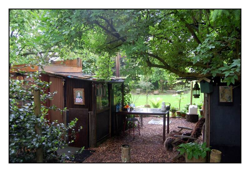 Joseph was once one of the most famous puppeteers in the Netherlands. Because I suspected that he could tell me a lot about Bible stories, I went to see him for the first time in 2004. Since that time we have had a lot of conversations with each other and I started to consider him as my friend. On the picture you can see Joseph with my other friend Firoz. Oddly enough, Firoz had met my friend Jozef during the time when Joseph was still in the bicycle shed. Jozef lived in a bicycle shed for 2 years and had to leave there. He built his own very little house in the garden of a nice villager. This little house is often crowded. Above a picture that I made with a very special company that visited him from Greece. The country where he wanted to be baptized.