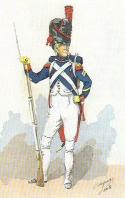 According to the stories that developed about him, Chauvin was born in Rochefort, around 1780. He enlisted at age 18, and served honorably and well. He is said to have been wounded 17 times in his nation's service, resulting in his severe disfigurement and maiming. For his loyalty and dedication, Napoleon himself presented the soldier with a Sabre of Honor and a pension of 200 francs.[1]